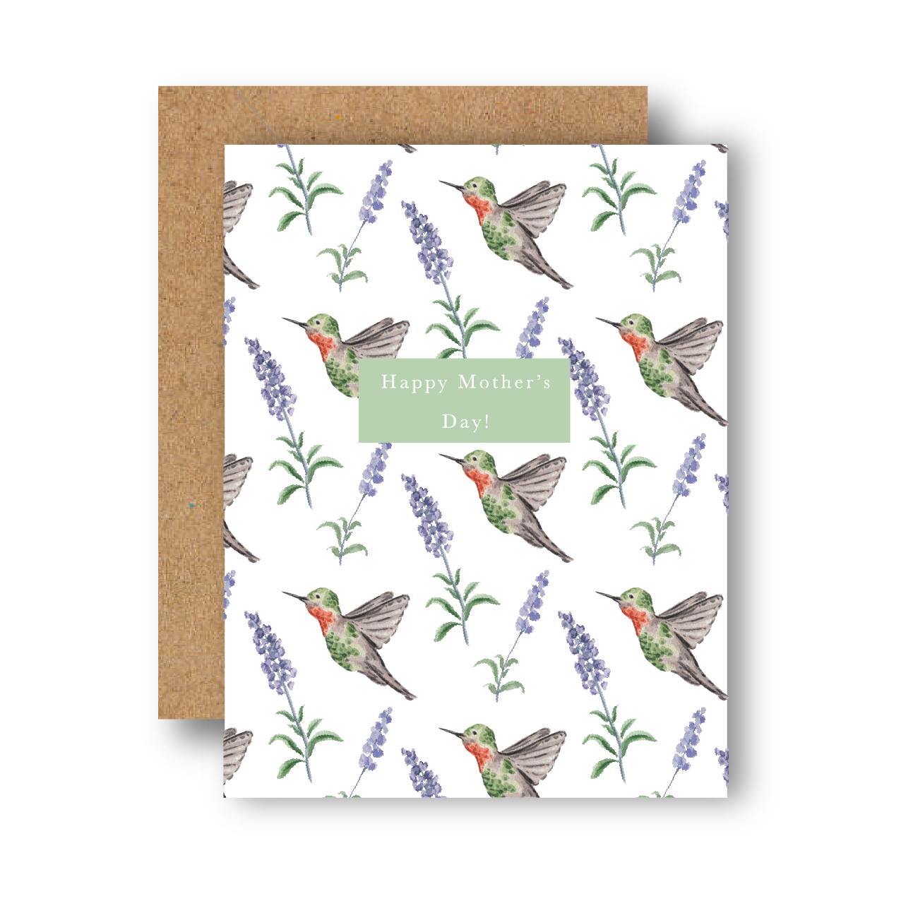 Our 'Happy Mother's Day' greeting card is perfect for writing a note to mama, who deserves lots of celebrating this upcoming Mother's Day. Thick, heavyweight paper means no ink bleed-through, and a felt texture with coordinating kraft paper envelope makes for easy writing. Featuring hand-painted watercolor pattern of hummingbirds and forget-me-not flowers, this card is a stationery staple for any daughter, son, or spouse to give to mom!